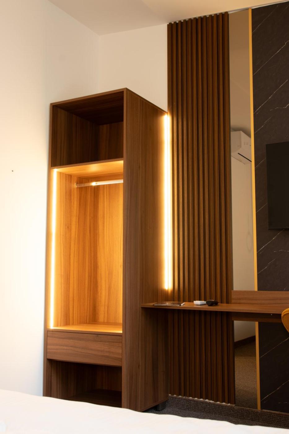 Superior Studio. The studio features air conditioning, soundproof walls, as well as a private bathroom boasting a shower and a hairdryer. The studios kitchenette, which has a refrigerator, is available for cooking and storing food. The studio offers a flat-screen TV, an electric kettle, a carpeted floor, heating as well as garden views. The unit has 1 bed. ;