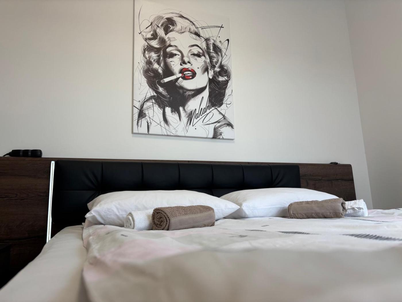 Two-Bedroom Apartment. This spacious apartment comes with 1 living room, 2 separate bedrooms and 1 bathroom with a walk-in shower and free toiletries. In the fully equipped kitchen, guests will find a stovetop, a refrigerator, kitchenware and an oven. The air-conditioned apartment features a flat-screen TV with cable channels, a washing machine, a private entrance, soundproof walls as well as city views. The unit has 4 beds.