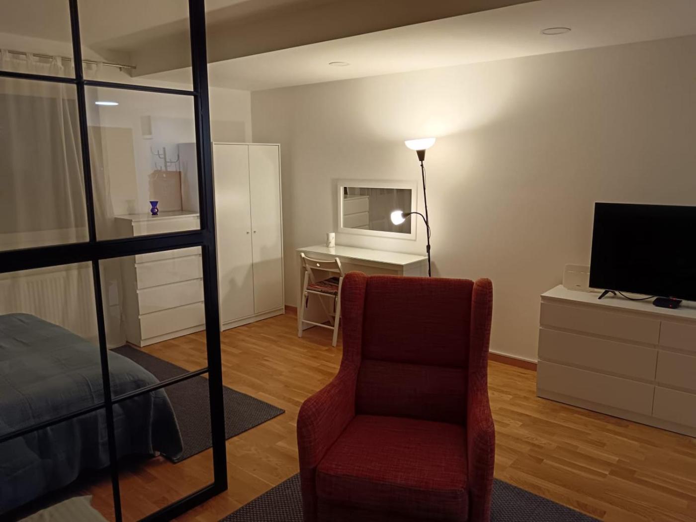 One-Bedroom Apartment. This air-conditioned apartment consists of 1 living room, 1 separate bedroom and 1 bathroom with a walk-in shower. The well-fitted kitchenette features a stovetop, a refrigerator, kitchenware and a microwave. The apartment provides a flat-screen TV with cable channels, a wardrobe, an electric kettle, parquet floors as well as city views. The unit offers 2 beds.